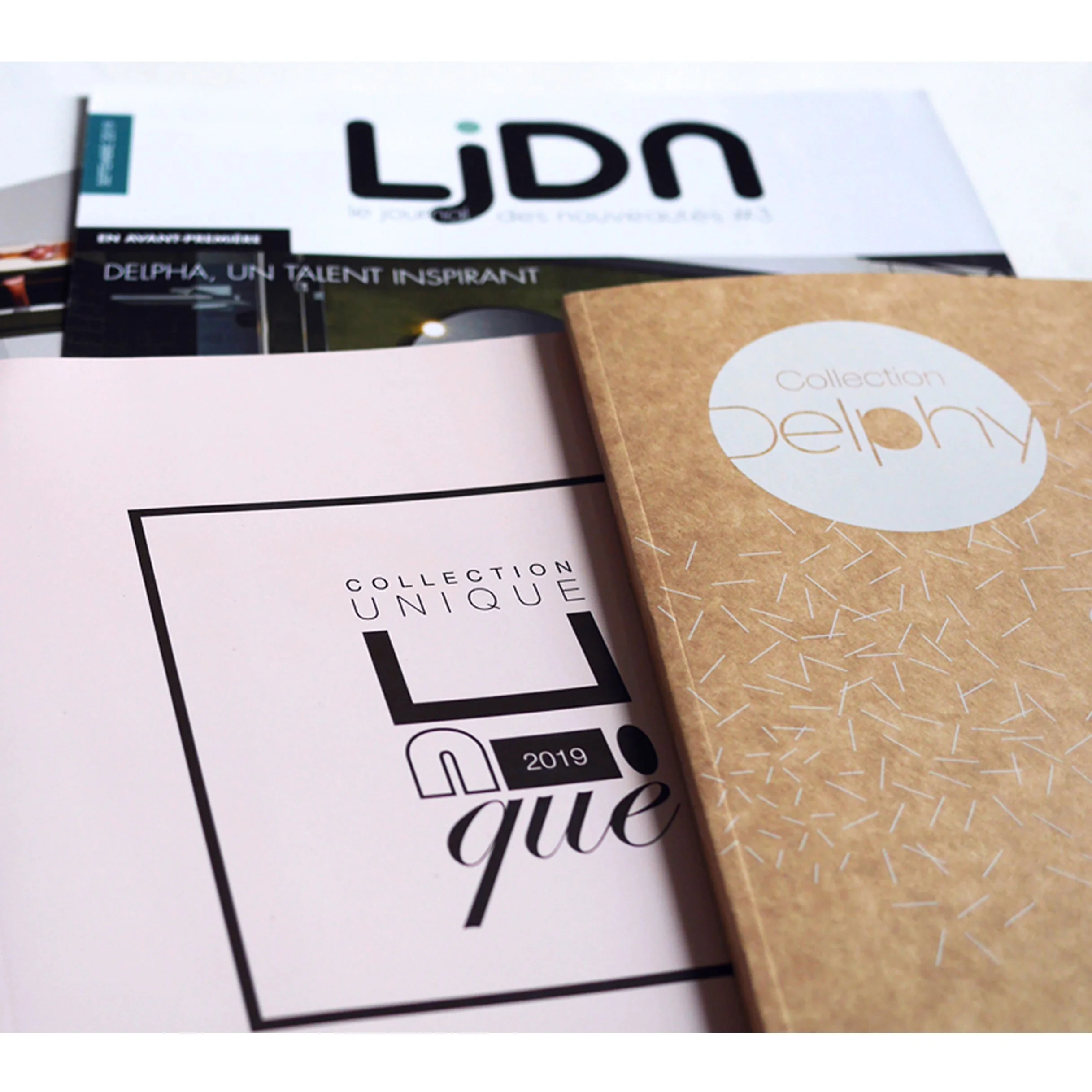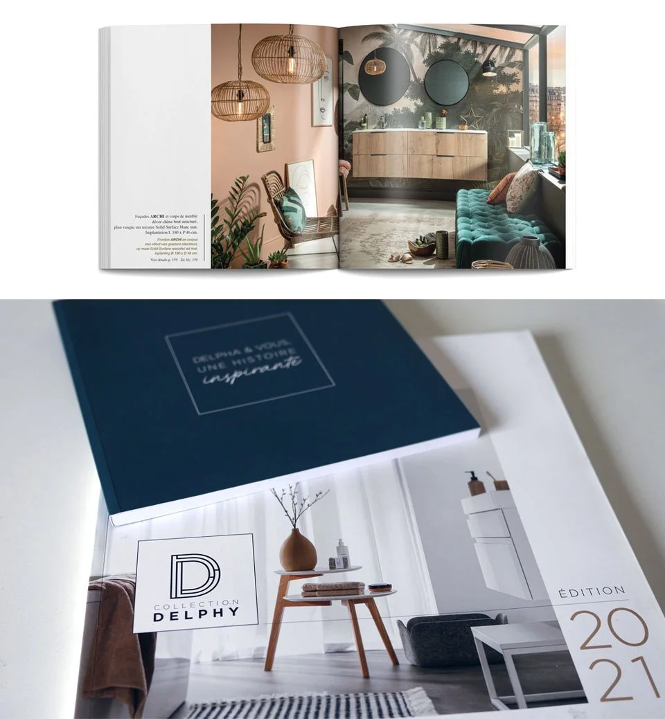 Delpha / Unique Céation graphique pour divers supports print: PLV, kakémono, plaquette, brochure, catalogue.Client: Com un lien